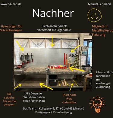 Ein beeindruckendes Beispiel: Das Team, das diese Werkbank nach 5S-Kriterien optimiert hat, hatte ein durchschnittliches Alter von 56 Jahren – und das Ergebnis spricht für sich!