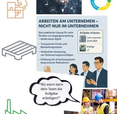 In vielen Unternehmen bestimmt das Tagesgeschäft den Rhythmus – für Mitarbeitende ebenso wie für Führungskräfte. Dabei bleibt oft wenig Zeit, sich um grundlegende Verbesserungen oder strategische Weiterentwicklungen zu kümmern. Probleme werden zwar erkannt und diskutiert, aber selten konsequent gelöst. Ein häufiger Grund: Es fehlt an Transparenz und einer klaren Aufgabenstruktur außerhalb des operativen Betriebs.