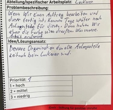 Niemand kennt den Arbeitsplatz besser als diejenigen, die dort tagtäglich arbeiten. Ein einfacher, jedoch oft vernachlässigter Grundsatz. Ein kraftvolles Werkzeug, um diesem Prinzip Leben einzuhauchen, ist die Problem-Ideen-Meldekarte (PIMK) – ein echtes Sprachrohr für Mitarbeiter.