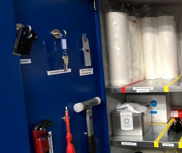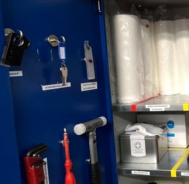 3. Um Laufwege und Suchzeiten zu vermeiden, zeige ich den Menschen gern, wie sinnvoll es ist, die Betriebsmittel direkt am Ort des Gebrauches anzubringen. Da die meisten Maschinen gewichtige Stahlmonster sind, funktionieren die Magneten auch ganz gut.